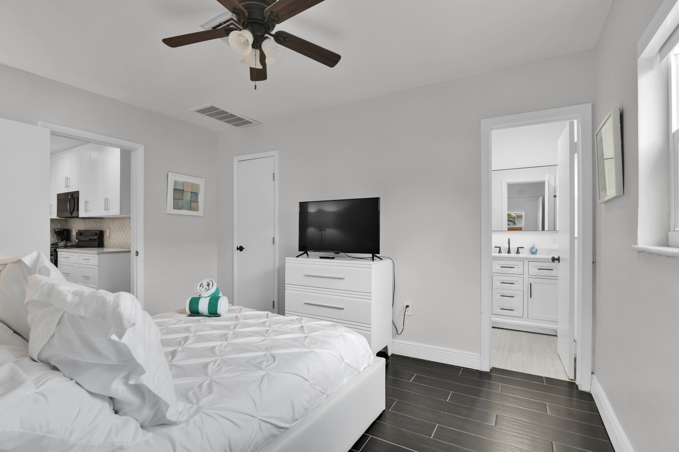 4 Spacious bedrooms with ample closet space for extended stays.