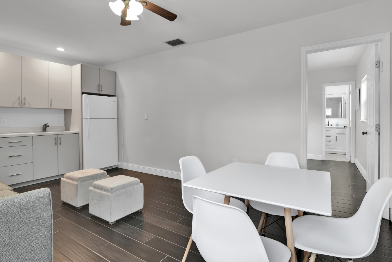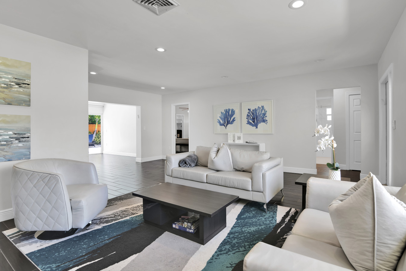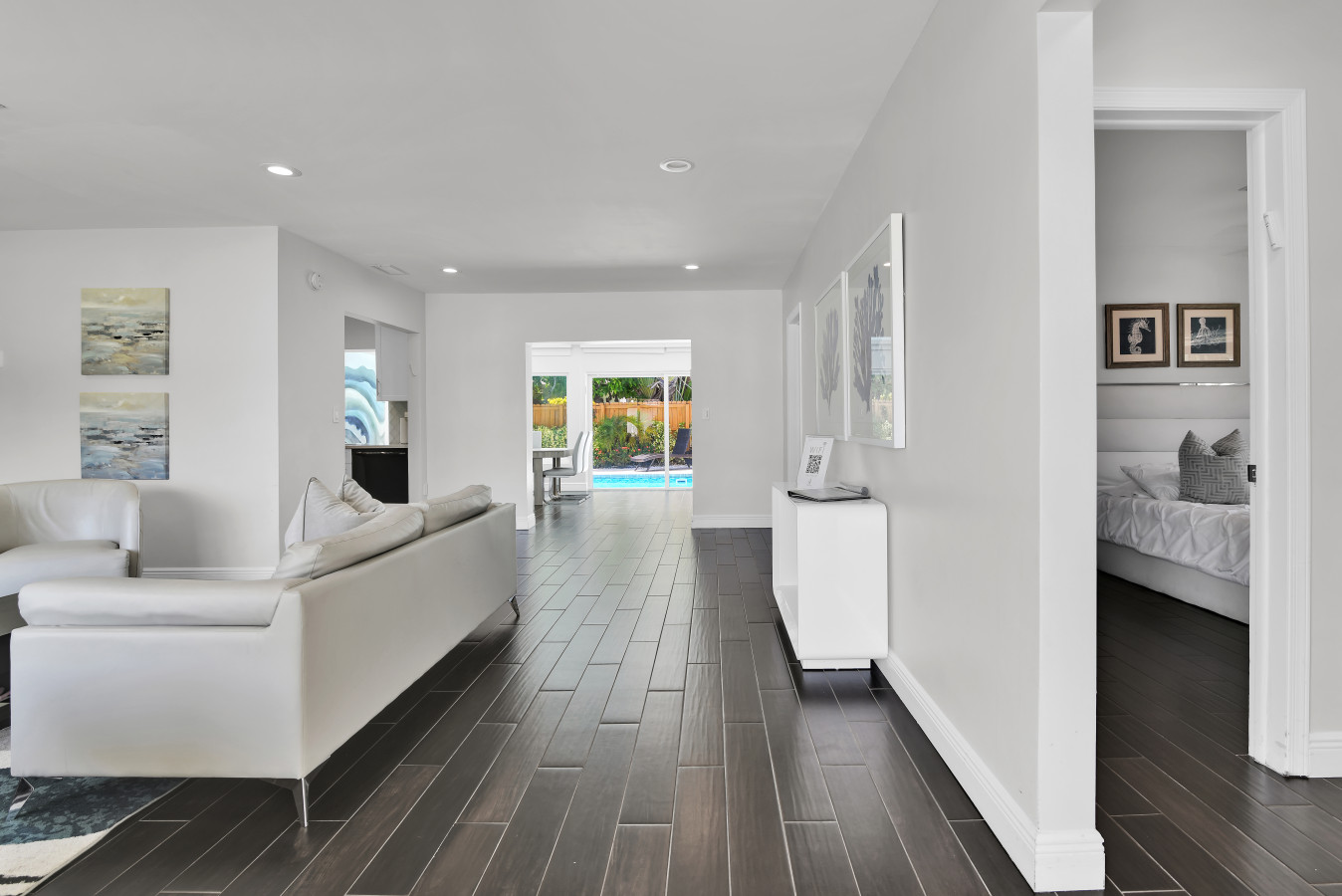 Indulge in the epitome of relaxation. Take a dip in the heated, saltwater pool. Feast in the outdoor dining space, complete with a grill, loungers, seating for 8, and an umbrella for shade. Backyard is fully-fenced in. Pool baby gate can be added. Pet-friendly ($250 pet fee applies)
