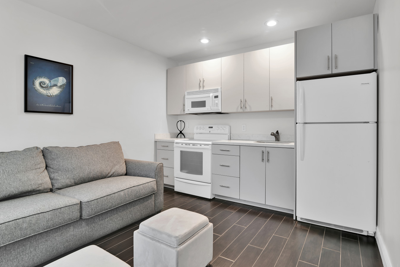 Modern, Spacious Kitchen is stocked with pots, pans, dishes, silverware, wine glasses, BBQ utensils, coffee maker and more! Please note that kitchens are not certified kosher. We offer a locked shabbos/kosher closet. The kitchen can be koshered for a fee.