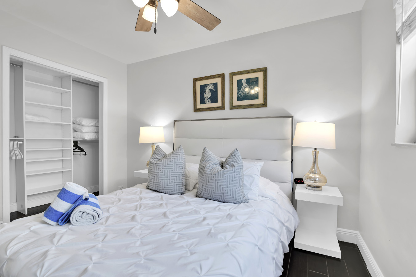 Master Bedroom has a walk-in closet with an iron, ironing board, extra pillows, blankets, sheets.