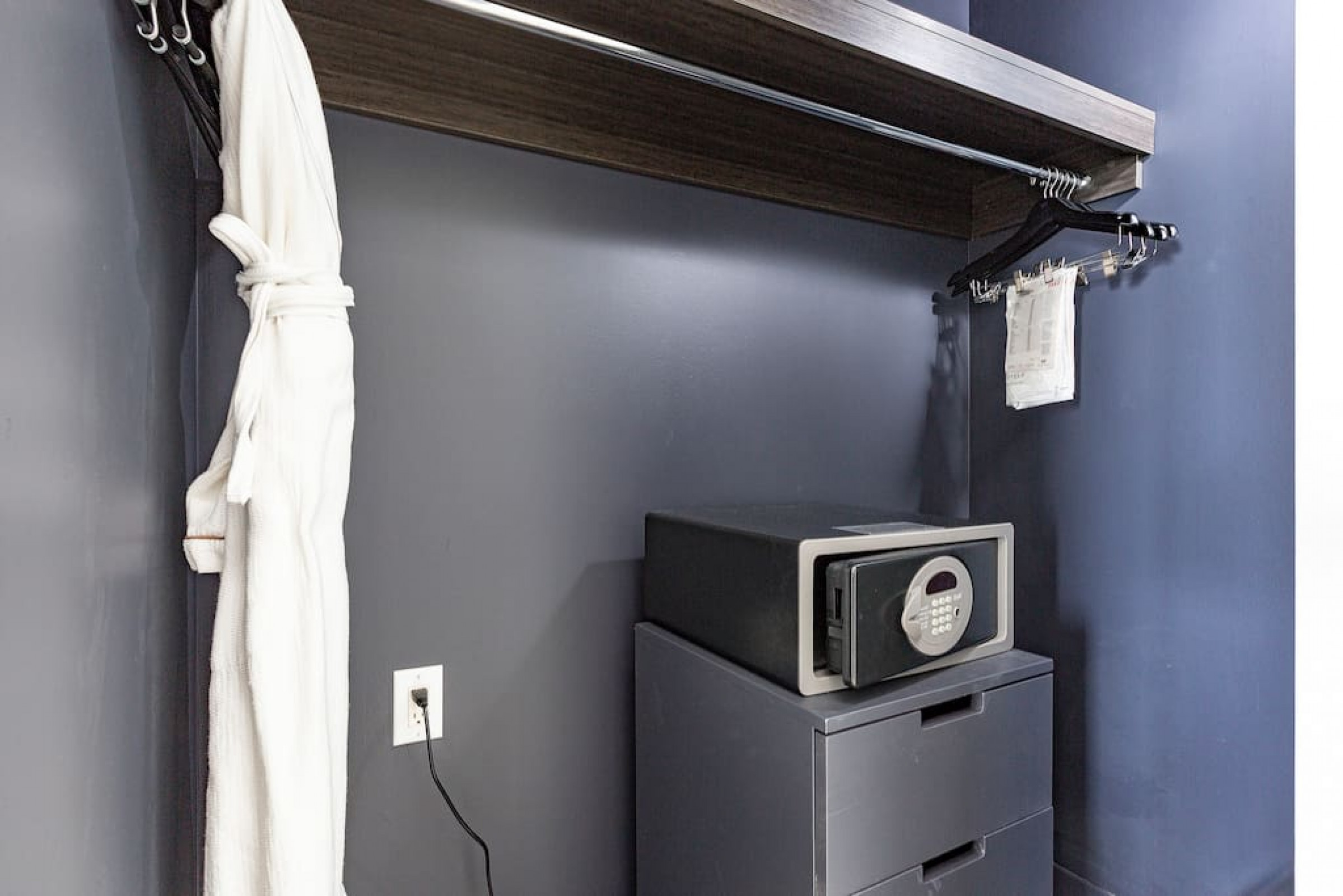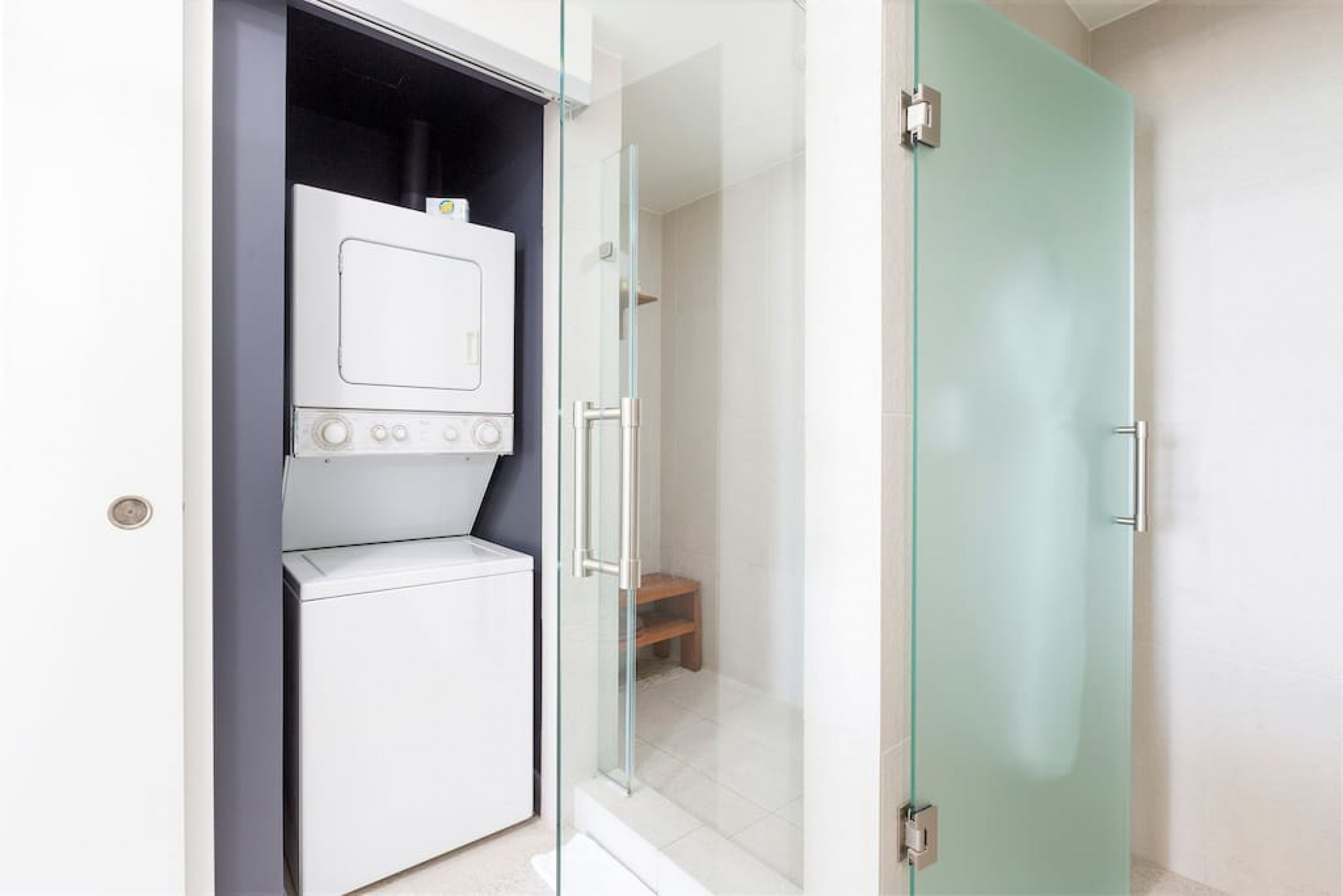 Master Suite has a stackable washer and dryer, iron, ironing board, and safe in the closet.